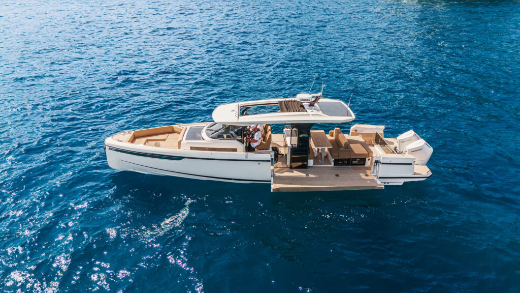Discover the Saxdor 400 GTS, the open boat that turns every outing into a unique experience. With its walkaround deck, folding terraces, and modular spaces, it brings you closer to the water and adapts to every mood: sunbathing, social dining, or thrilling rides.