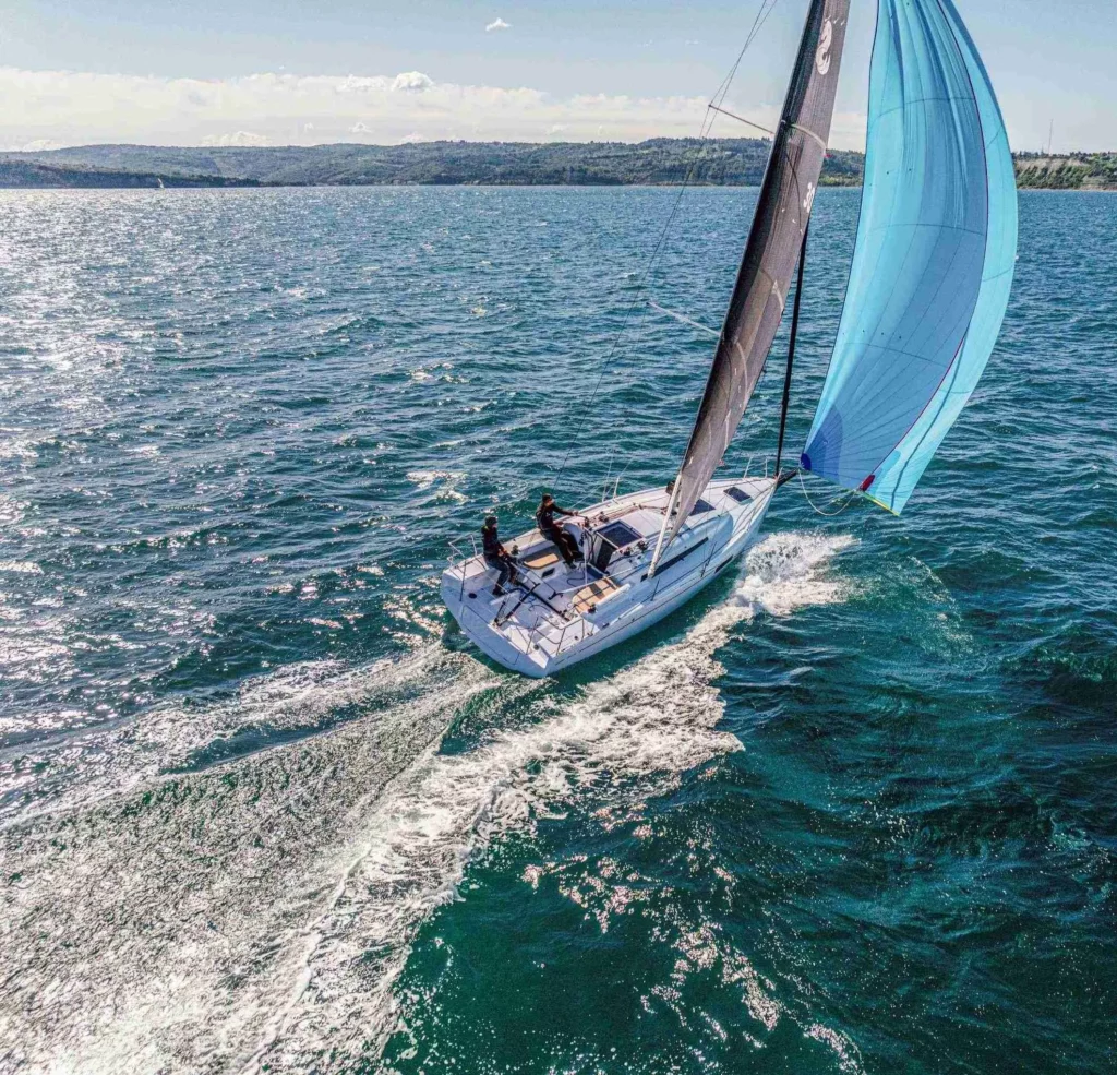 Pensé comme un planing cruiser, le First 30 associe les sensations de la navigation sportive à la polyvalence d’un voilier de croisière. Grâce à sa coque légère et à une architecture moderne, il est capable d’atteindre facilement des vitesses élevées tout en restant simple à manœuvrer.