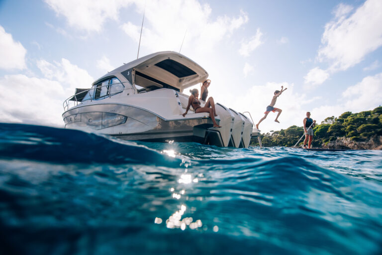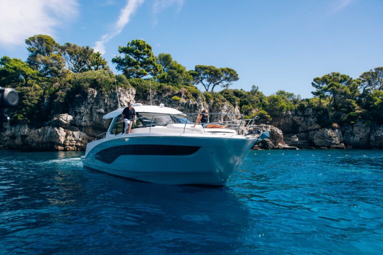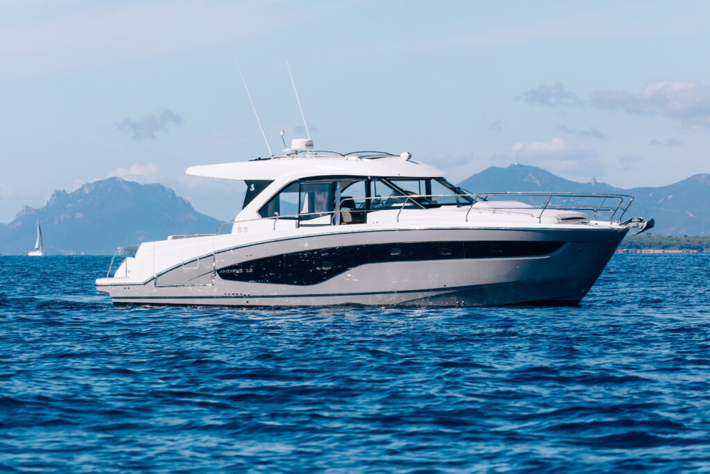 La carène performante permet une navigation confortable et sécurisée, tandis que les équipements électroniques garantissent contrôle et connectivité totale, via Seanapps pour la gestion du bateau depuis un smartphone.