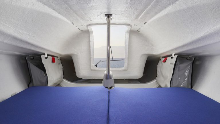 Coque large, plate et stable ; quille oscillante ballastée ; système de snuffer gennaker ; flèche d'enrure et commandes de pont minimisées permettent une expérience de rabotage et de voile facile à manipuler et passionnante. Étant facilement accessible en piste et démantelée, elle réaliserait ses ambitions de course dans la classe internationale d'un design unique ainsi que dans le camping en mer aventureux.