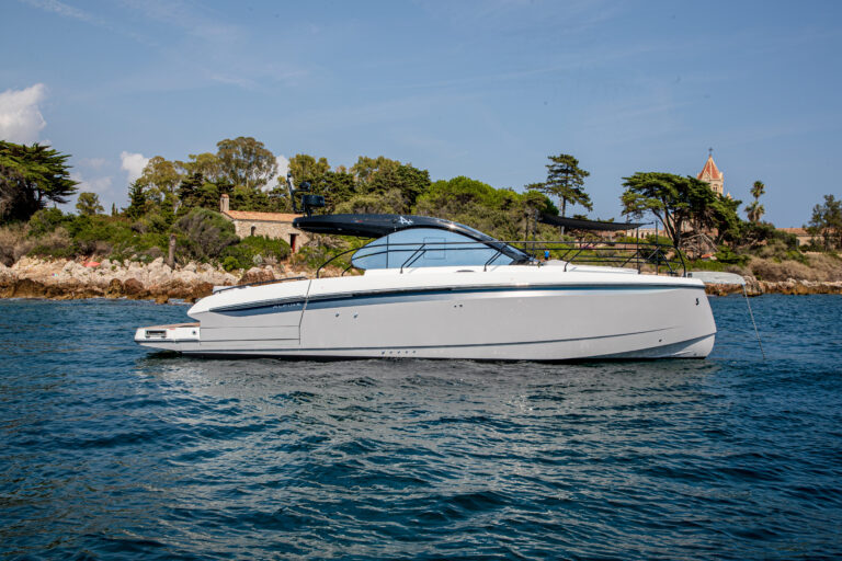 Le Gran Turismo 40 propose des motorisations hors‑bord (twin Mercury Verado 400 CV) ou inboard (Yanmar 320 CV) selon les préférences, offrant une navigation dynamique et plaisante. La plate‑forme Air Step® optimise le passage dans les vagues, la stabilité et l’accélération, tout en améliorant la tenue de mer générale.