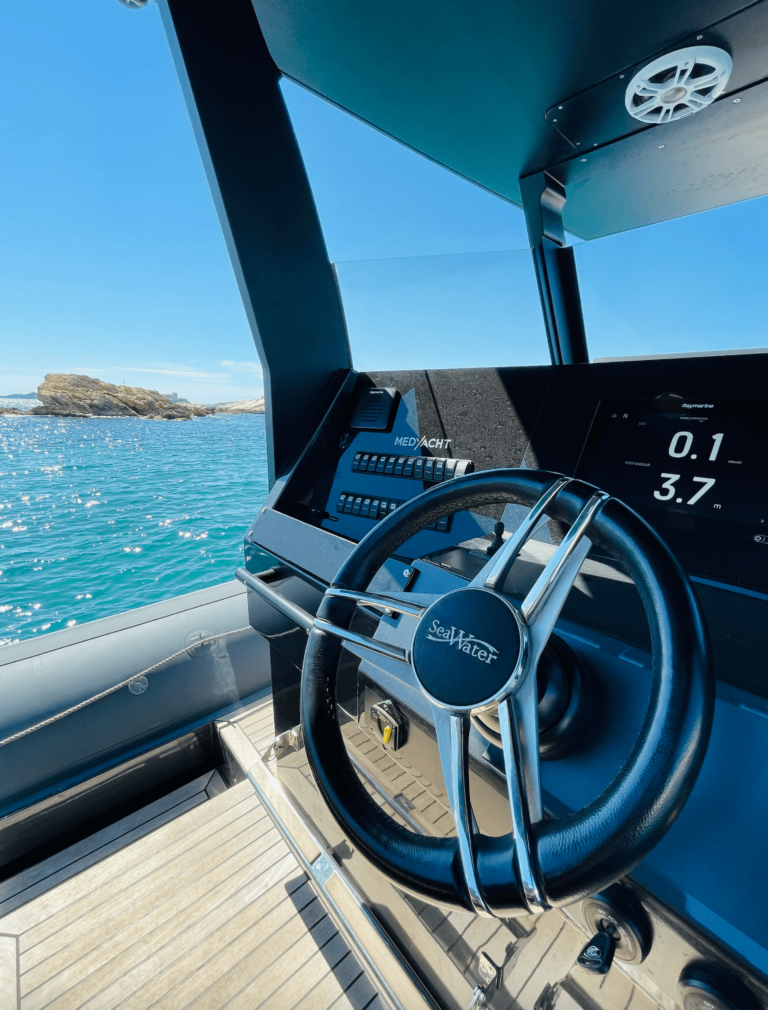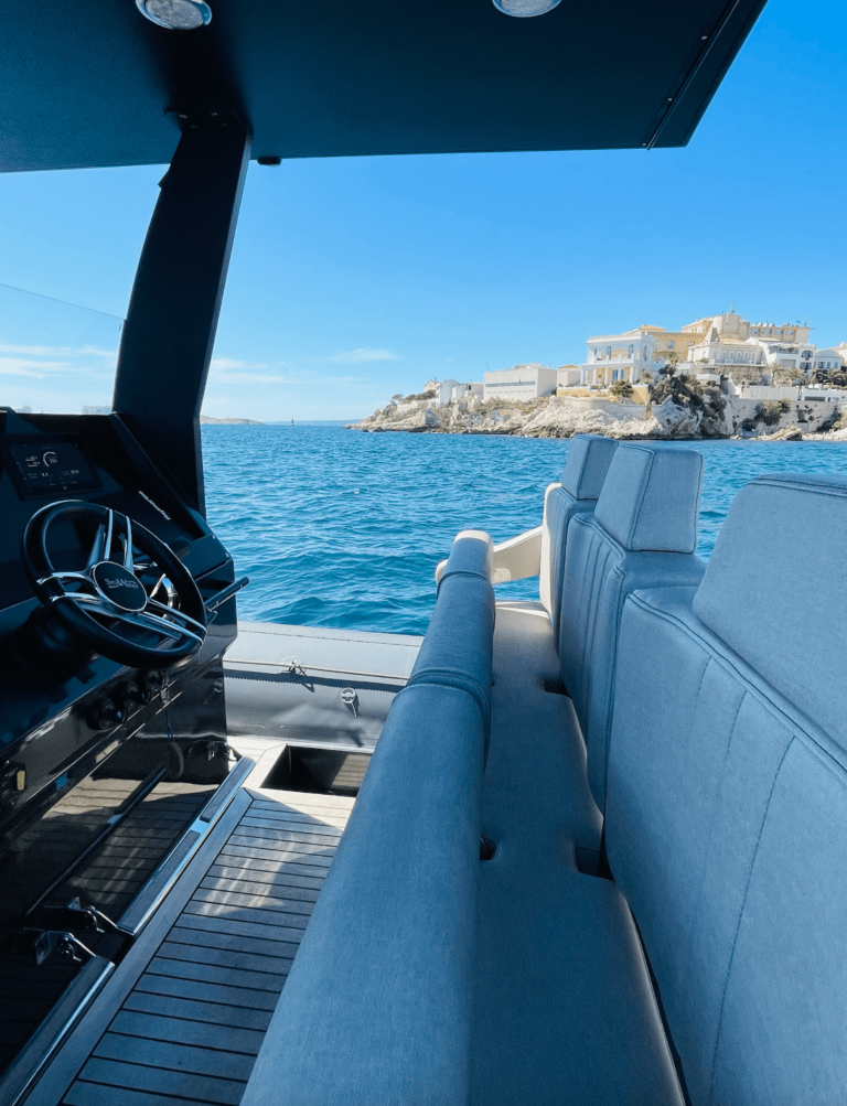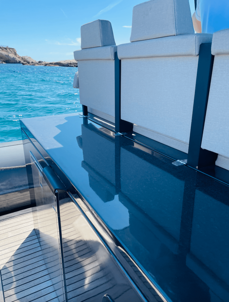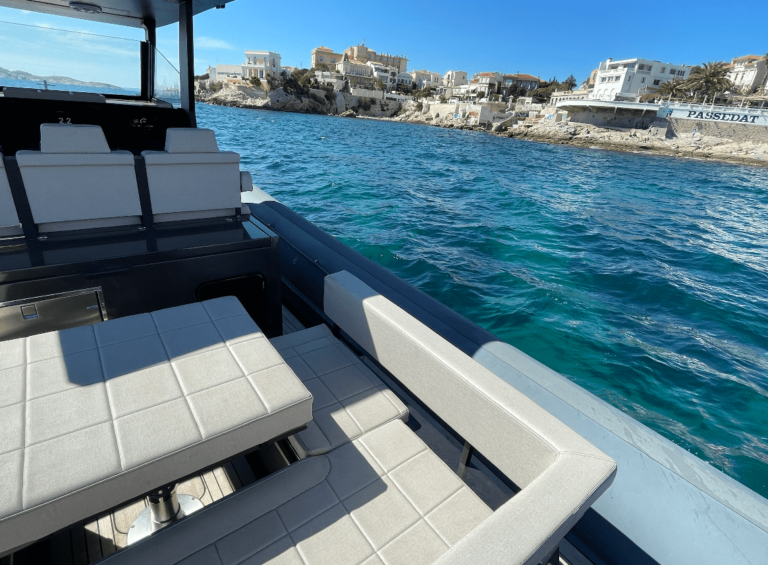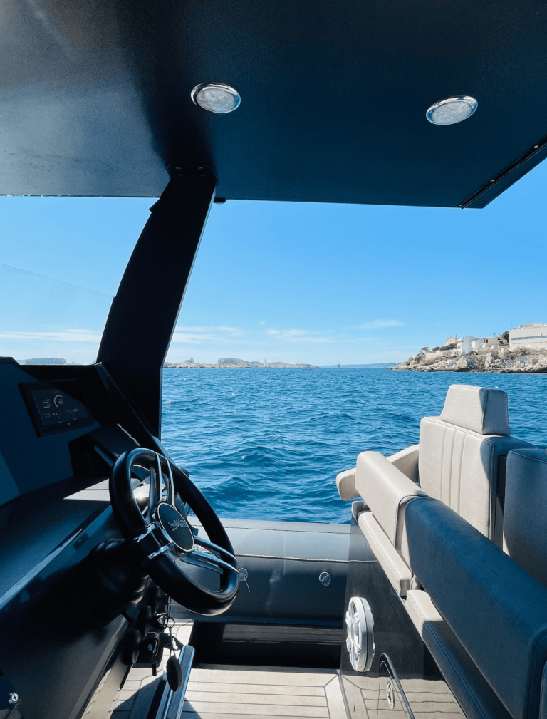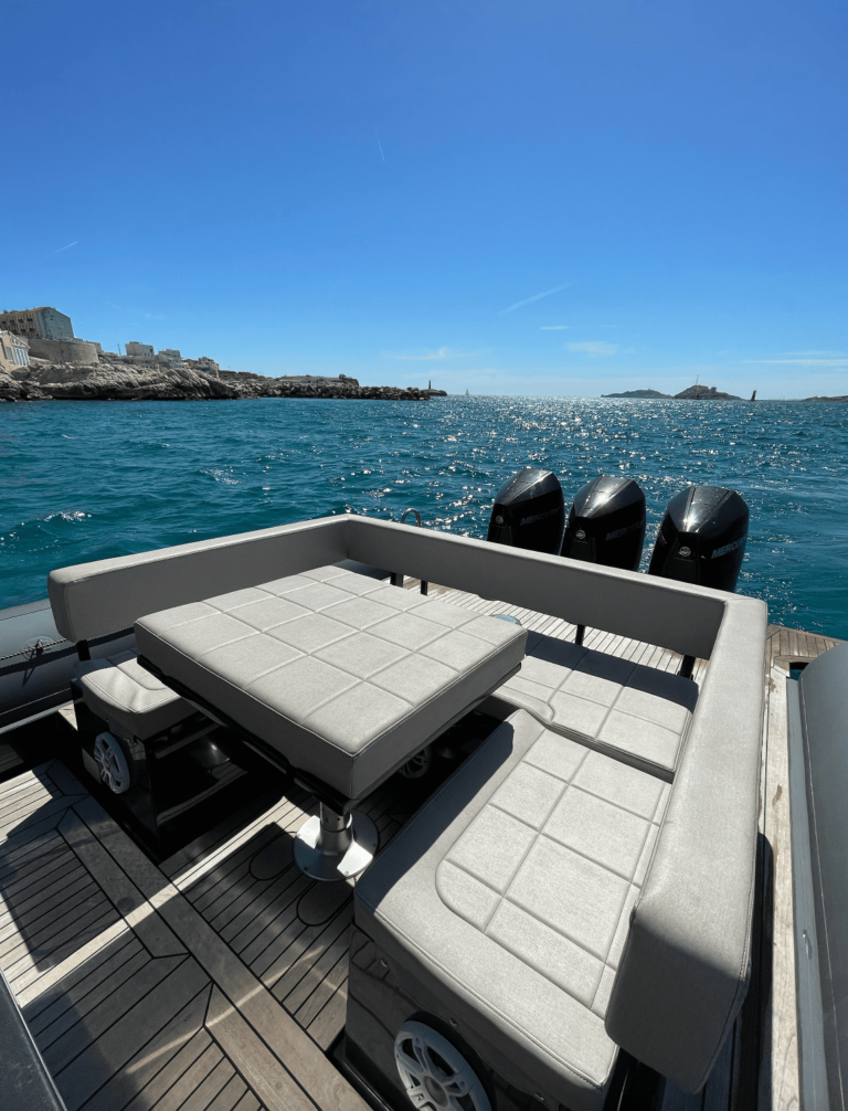 Véritable pépite de la flotte Sea Water, le Phantom 400 est un bateau riche et imposant de 12,70m, mais toujours maniable et sécurisant.