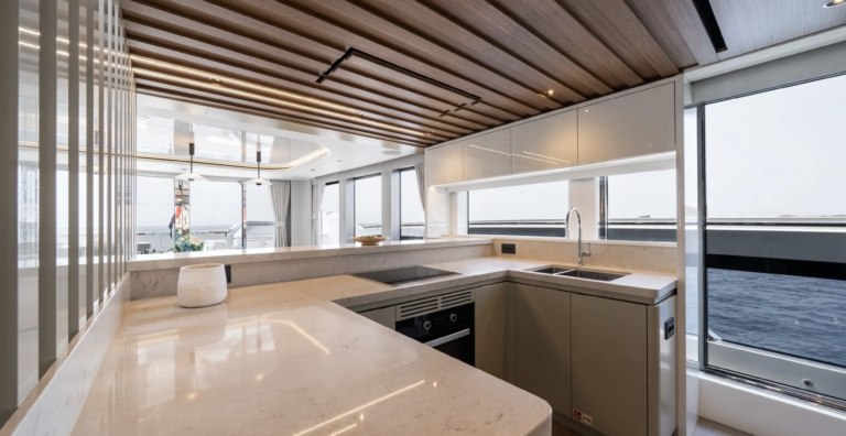 Pour le propriétaire, l’option d’une suite principale sur le pont principal offre une intimité rare avec un accès direct au pont avant, tout en conservant l’élégance et le luxe.